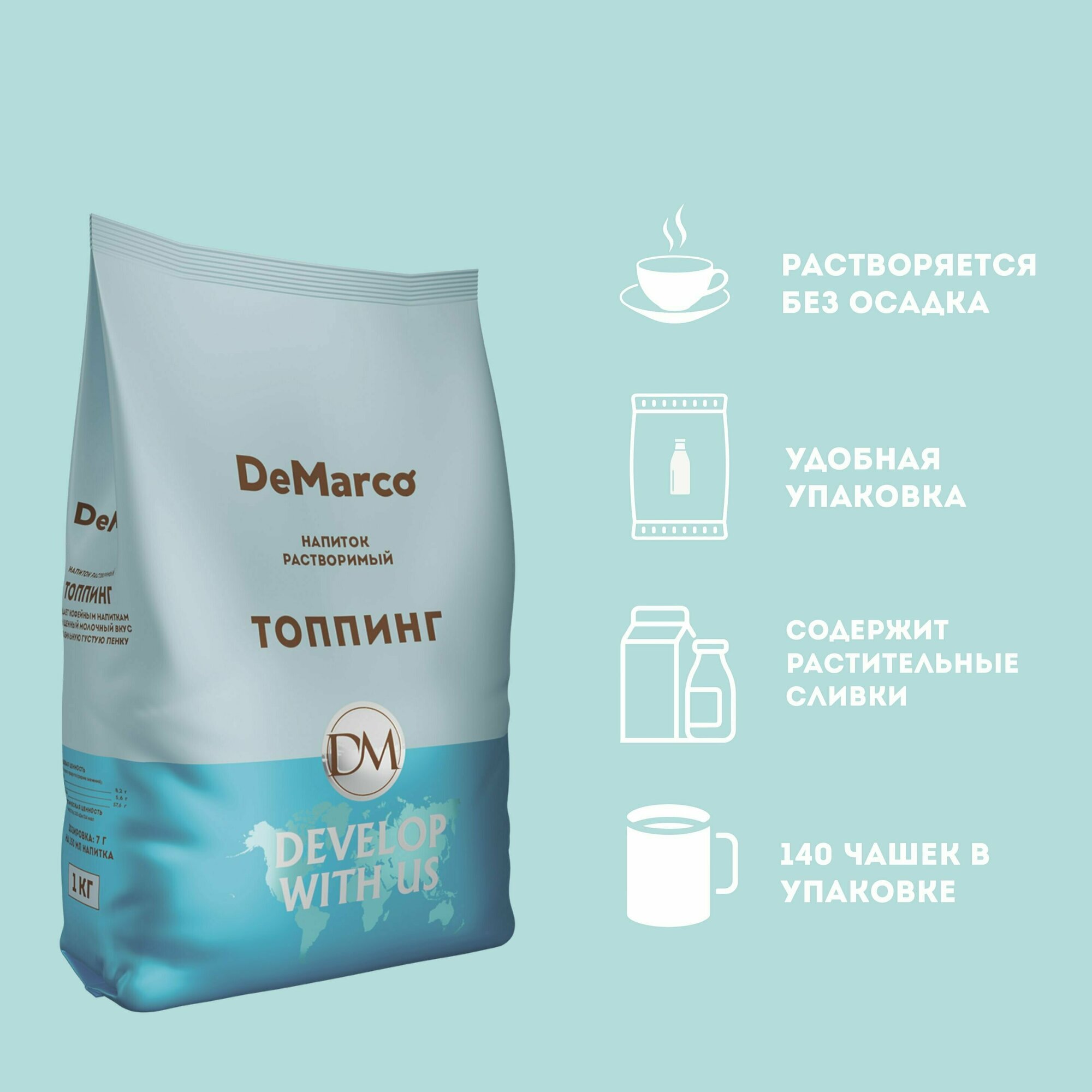 Молочный напиток DeMarco топпинг - это уникальный растворимый напиток, который может стать вашим лучшим другом в любое время дня. Этот напиток изготовлен из высококачественного сухого молока и имеет отличную энергетическую ценность - 276 ккал/100 г.