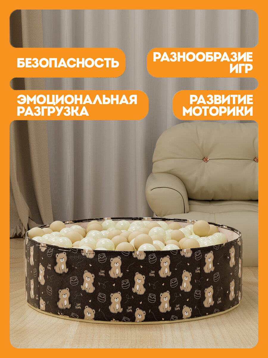 В моменты, когда вы не играете в бассейн, его можно компактно сложить и убрать, либо использовать в качестве короба для игрушек. Если манеж используется для новорожденных - от 0 месяцев - не рекомендуем полностью наполнять его шариками.