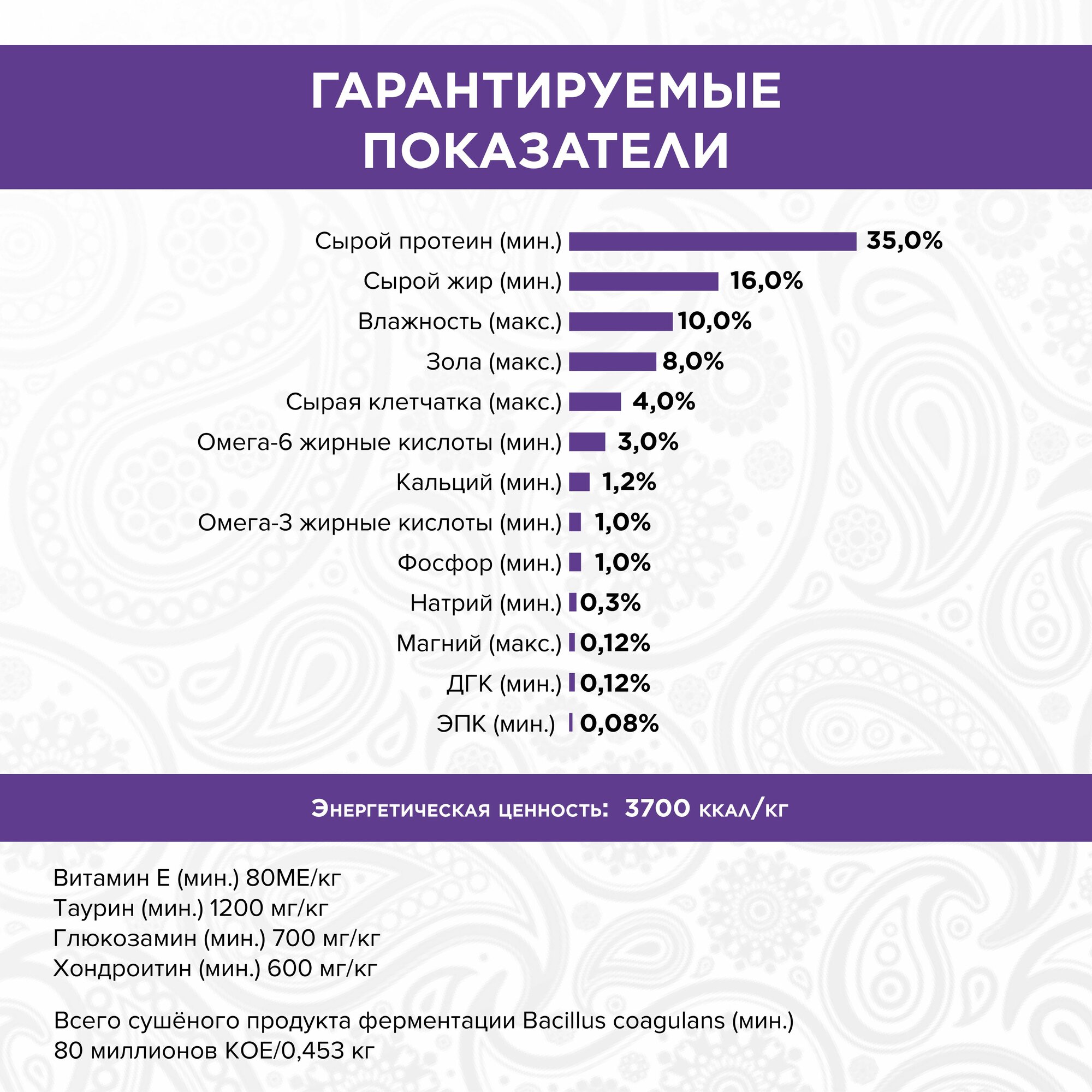 Корм PureLuxe содержит глюкозамин и хондроитин для поддержки здоровья суставов, а также оптимальный баланс натуральных антиоксидантов, омега-3 и омега-6 жирных кислот для поддержания работы иммунной системы.