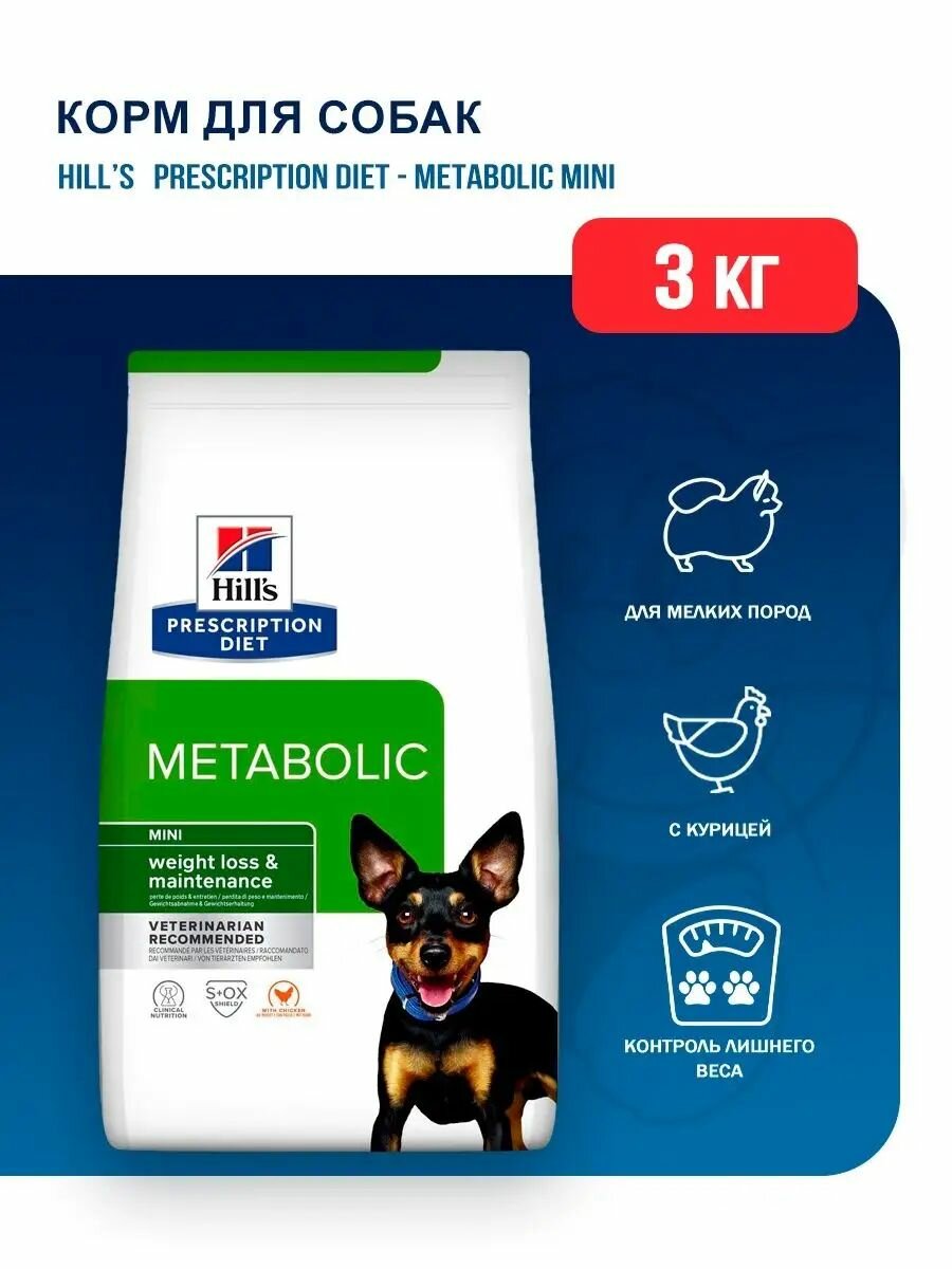 Сухой диетический корм Hills Prescription Diet Metabolic Mini для собак мелких пород для снижения и контроля веса, с курицей — 3 кг: сравнение цен, характеристики, фото, актуальное наличие и цены.