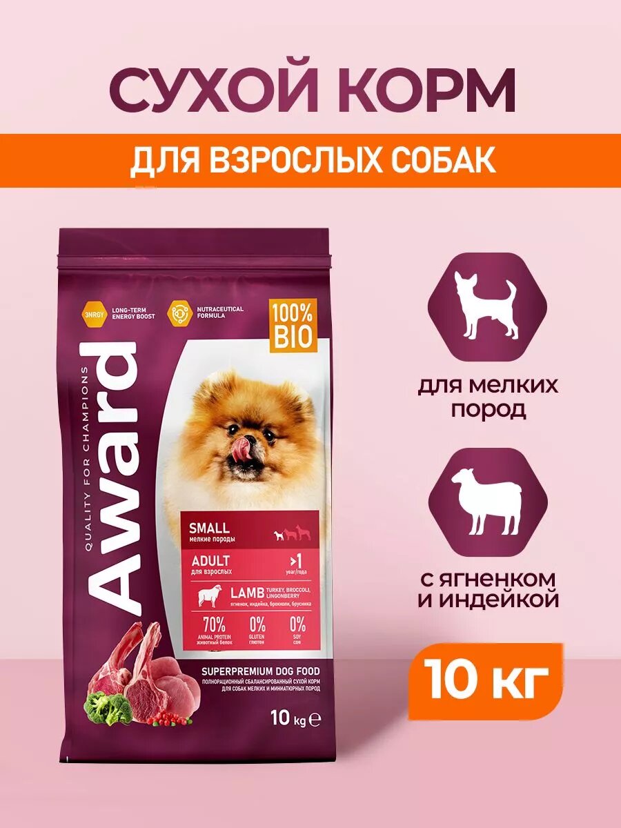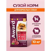 Купить Сухой корм 10 кг с индейкой и ягненком AWARD для взрослых собак мелких и миниатюрных пород, 1 упаковка с доставкой по всей России.