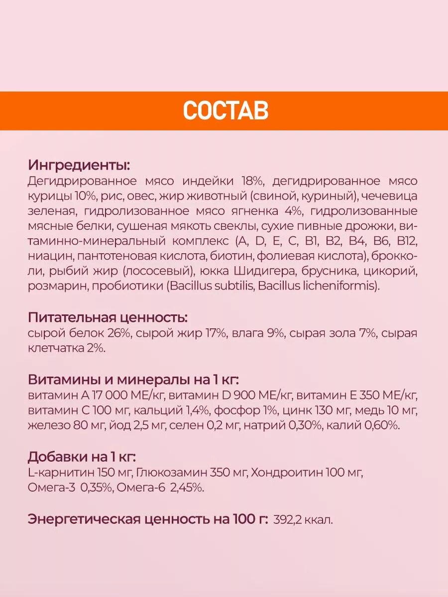 | Возраст животного | взрослые (1-6 лет), пожилые (7+), щенки (до 1 года) |