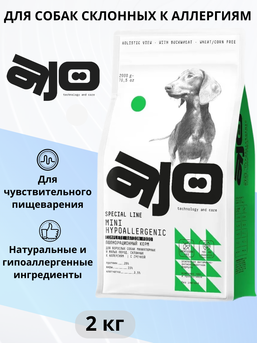 Сухой корм AJO Dog Mini Hypoallergenic с гречкой для собак миниатюрных и малых пород, склонных к аллергиям 2 кг: сравнение цен, характеристики, фото, актуальное наличие и цены.