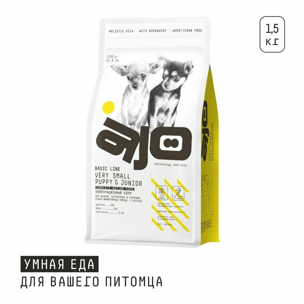 Купить Сухой корм AJO Dog Very Small Puppy & Junior с гречкой для щенков миниатюрных пород 1,5 кг с доставкой по всей России.