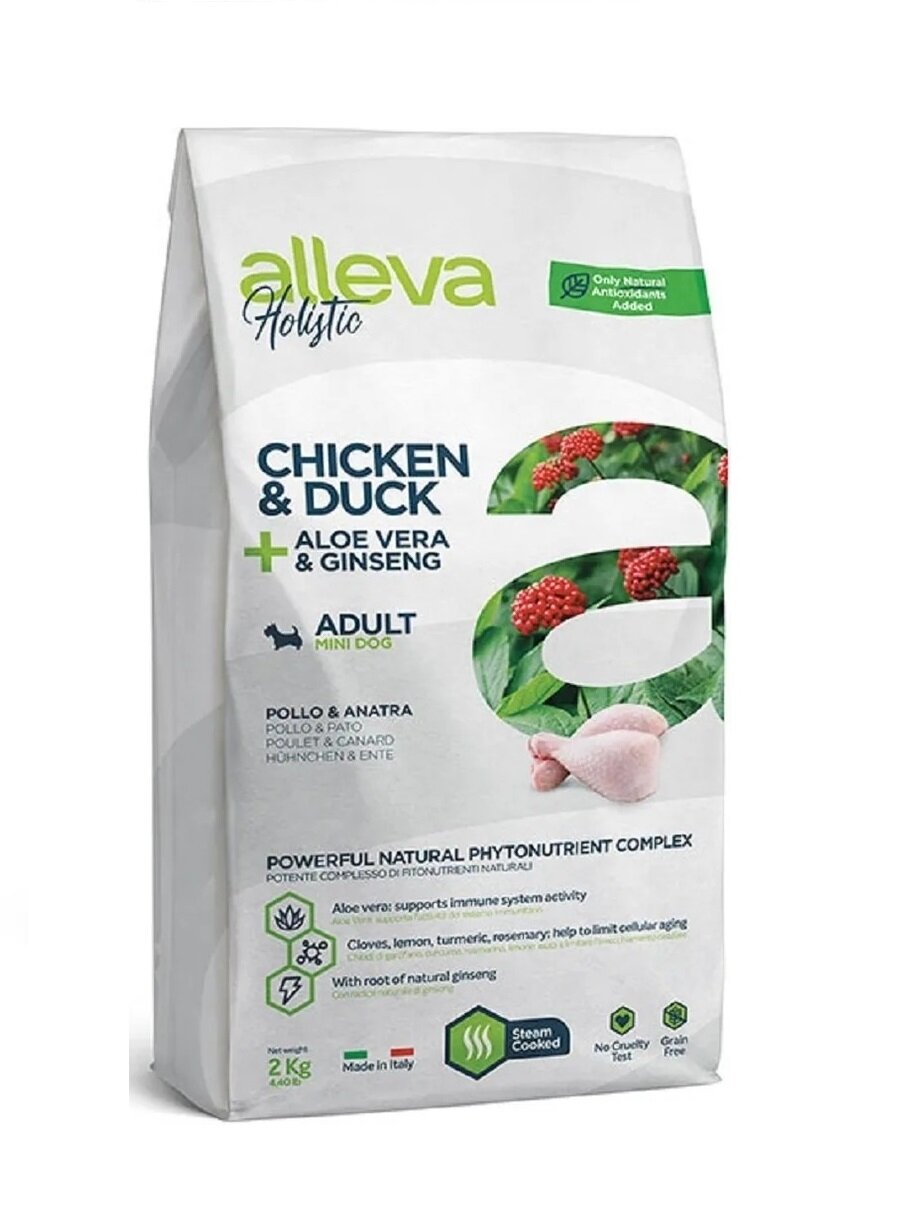 Alleva Holistic Dog Chicken & Duck + Aloe vera & Ginseng Mini - Alleva Полнорационный сбалансированный беззерновой корм для собак мелких пород.