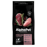 Купить Сухой корм AlphaPet (Альфапет) Superpremium для взрослых стерилизованных кошек и котов, с уткой и индейкой, 3 кг с доставкой по всей России.