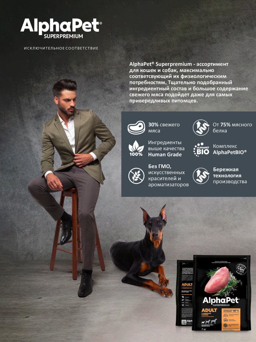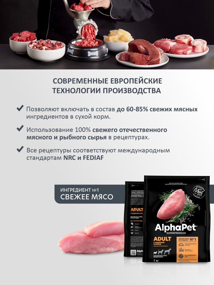Сухой корм AlphaPet Superpremium для взрослых собак мелких пород Индейка, 7 кг х 2 шт. – это высококачественный корм, разработанный специально для взрослых собак мелких пород.