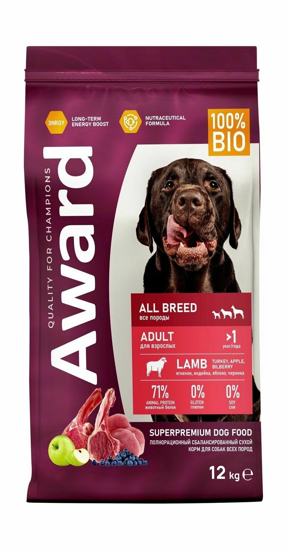 Сухой корм для взрослых собак всех пород с ягненком и индейкой от Award предназначен для полноценного питания и заботы о вашем питомце. Уникальная формула сочетает высококачественные мясные ингредиенты с добавлением сочных яблок и полезной черники, что обеспечивает не только вкус, но и оптимальный баланс витаминов и минералов.