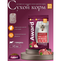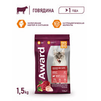 AWARD Indoor Big Cats сухой корм для взрослых домашних кошек крупных пород, с говядиной, курицей, брокколи и юккой Шидигера