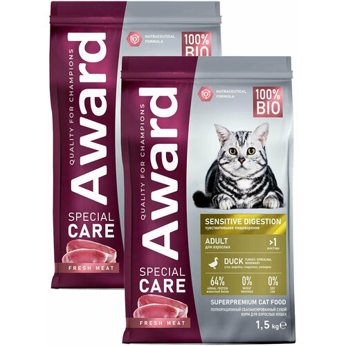 Корм Award - тщательно сбалансированная рецептура из 100% натуральных ингредиентов, созданная по инновационной формуле, обеспечивающей комплексную нутрицевтическую поддержку организма питомца.