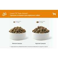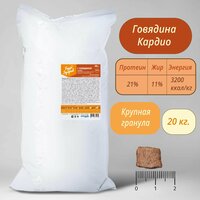 Мясные ингредиенты высокого качества 37 % (свежее мускульное мясо говядины 23 %, свежие субпродукты говяжьи (рубец, вымя, лёгкое) 8 %, дегидрированный океанский лосось 6 %)Свежая курага, сушеные бананы и шпинат — природные источники магния и калия для поддержки работы сердечно-сосудистой системы.