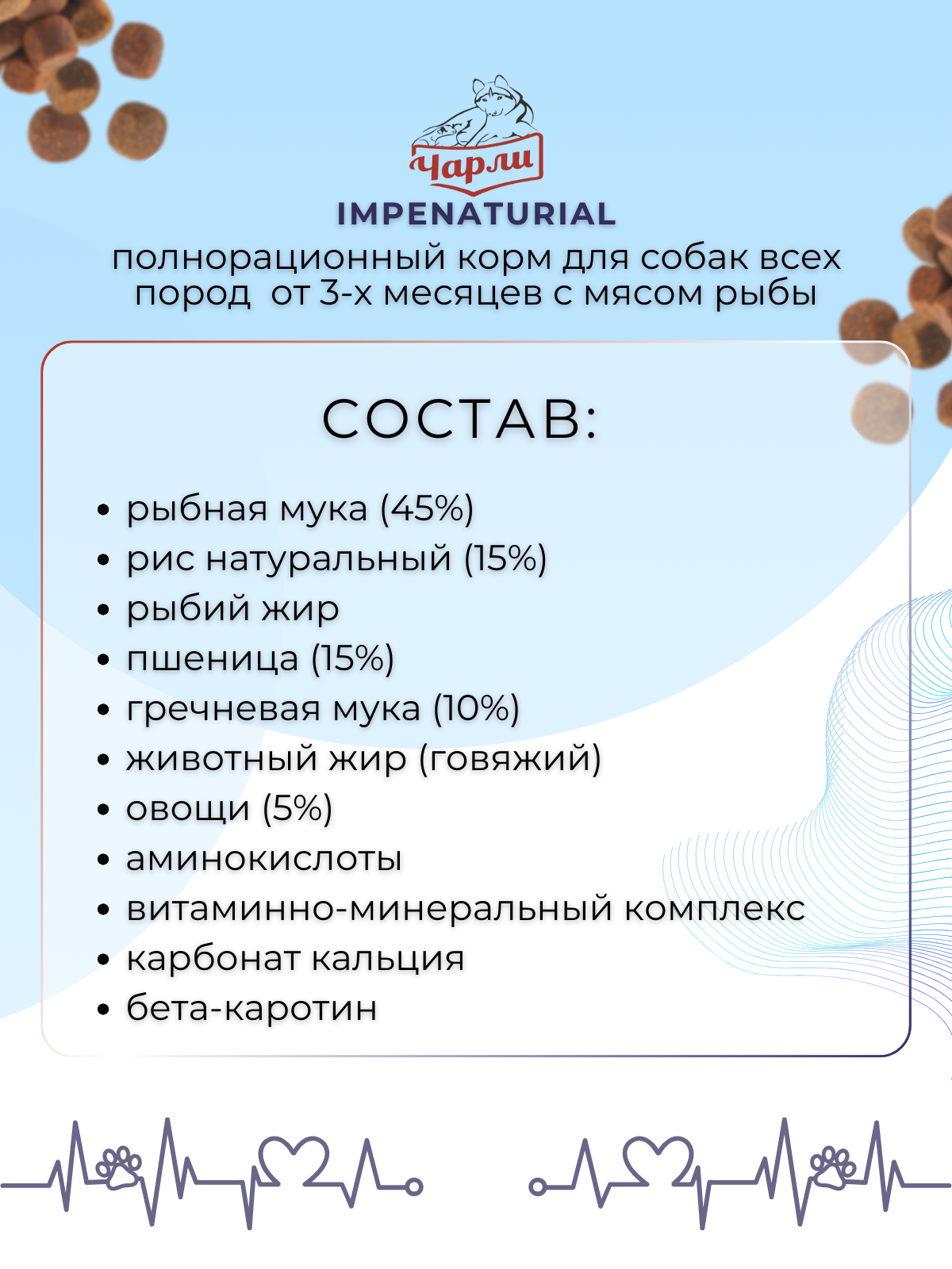 Сухой корм Чарли для собак всех пород от 3-х месяцев с рыбой Империал 10кг: сравнение цен, характеристики, фото, актуальное наличие и цены.
