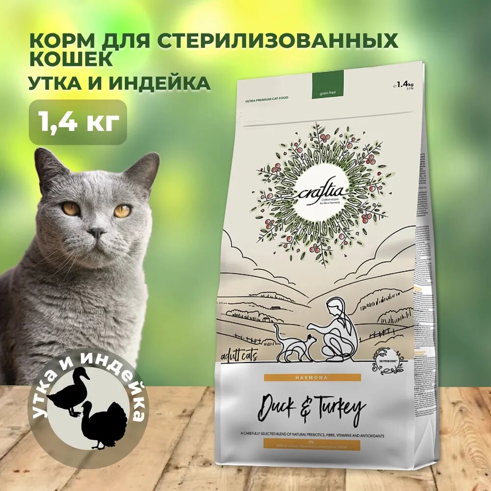 CRAFTIA HARMONA сухой корм для стерилизованных кошек из утки и индейки