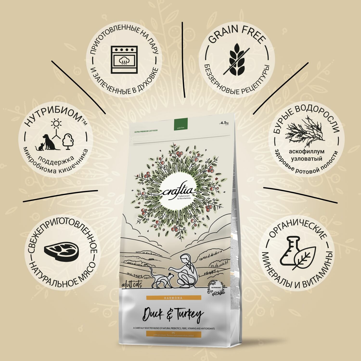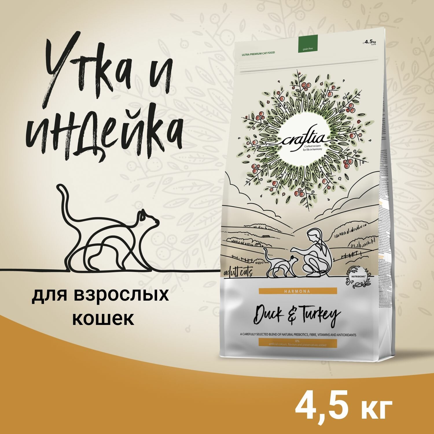 Сухой корм CRAFTIA HARMONA для взрослых кошек из утки и индейки 4,5 кг: сравнение цен, характеристики, фото, актуальное наличие и цены.