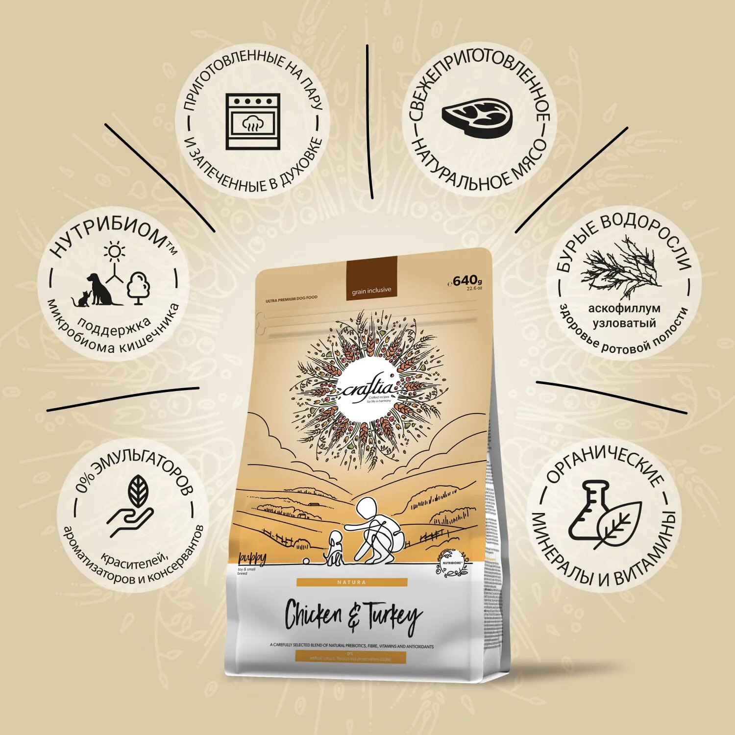 Сухой корм CRAFTIA NATURA для щенков миниатюрных и мелких пород из курицы и индейки 640 гр: сравнение цен, характеристики, фото, актуальное наличие и цены.