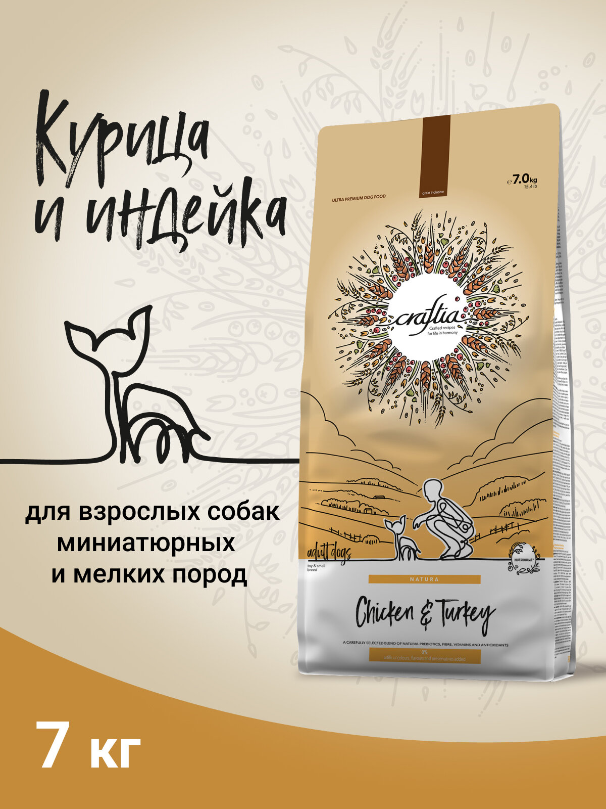 Купить Сухой корм Craftia NATURA для взрослых собак миниатюрных и мелких пород из курицы и индейки 7кг с доставкой по всей России.