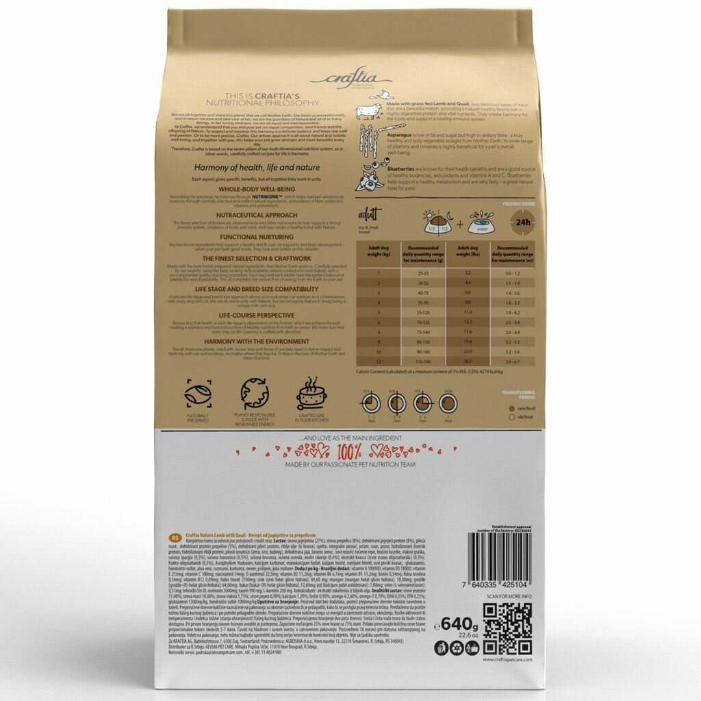 Сухой корм CRAFTIA NATURA для взрослых собак миниатюрных и мелких пород из ягненка с перепелкой 640 кг: сравнение цен, характеристики, фото, актуальное наличие и цены.
