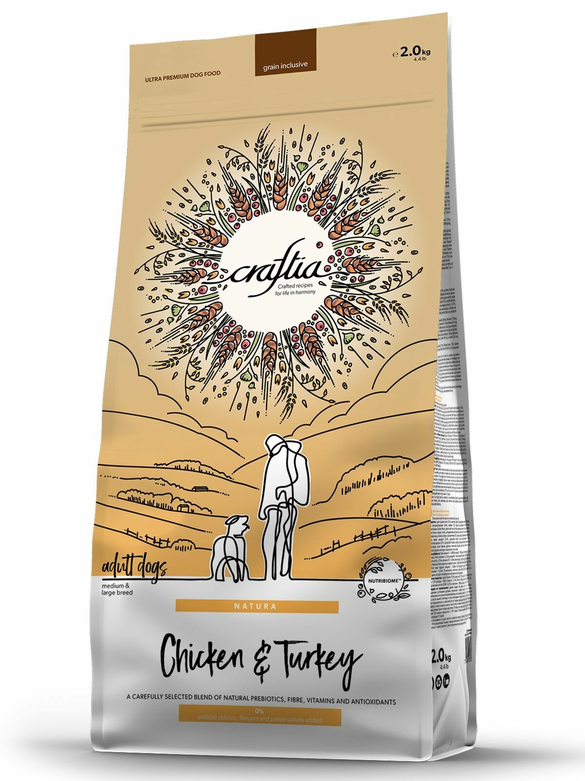 Купить Сухой корм CRAFTIA NATURA для взрослых собак средних и крупных пород из курицы и индейки 2 кг с доставкой по всей России.