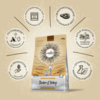 Основные источники белка в корме — свежее мясо курицы и индейки. Комбинация этих белков легко переваривается, помогает поддерживать оптимальный вес питомца, стабилизирует обмен веществ. Курица и индейка — отличные источники незаменимых аминокислот, витаминов и минералов.