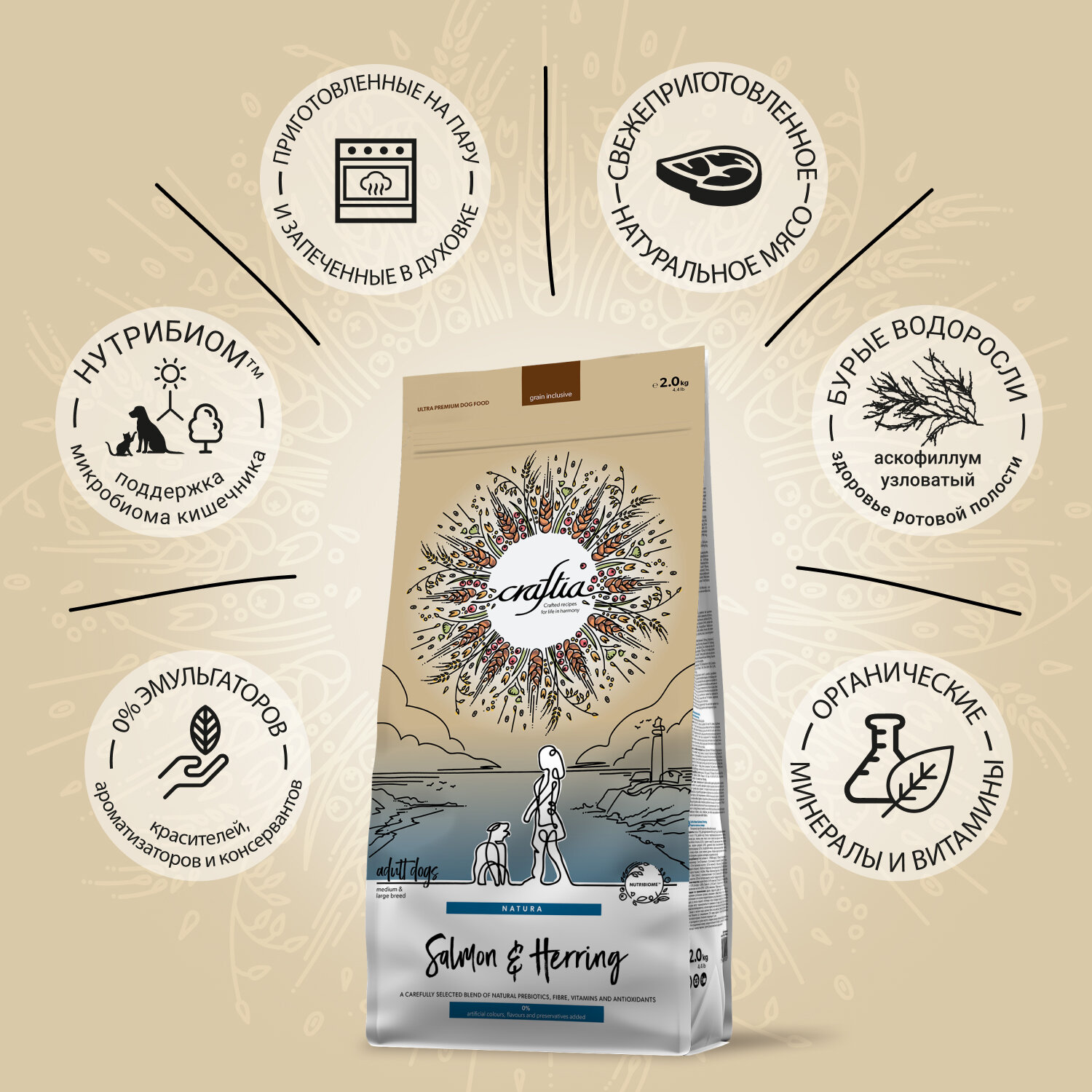 "CRAFTIA NATURA сухой корм для взрослых собак средних и крупных пород из лосося и сельди