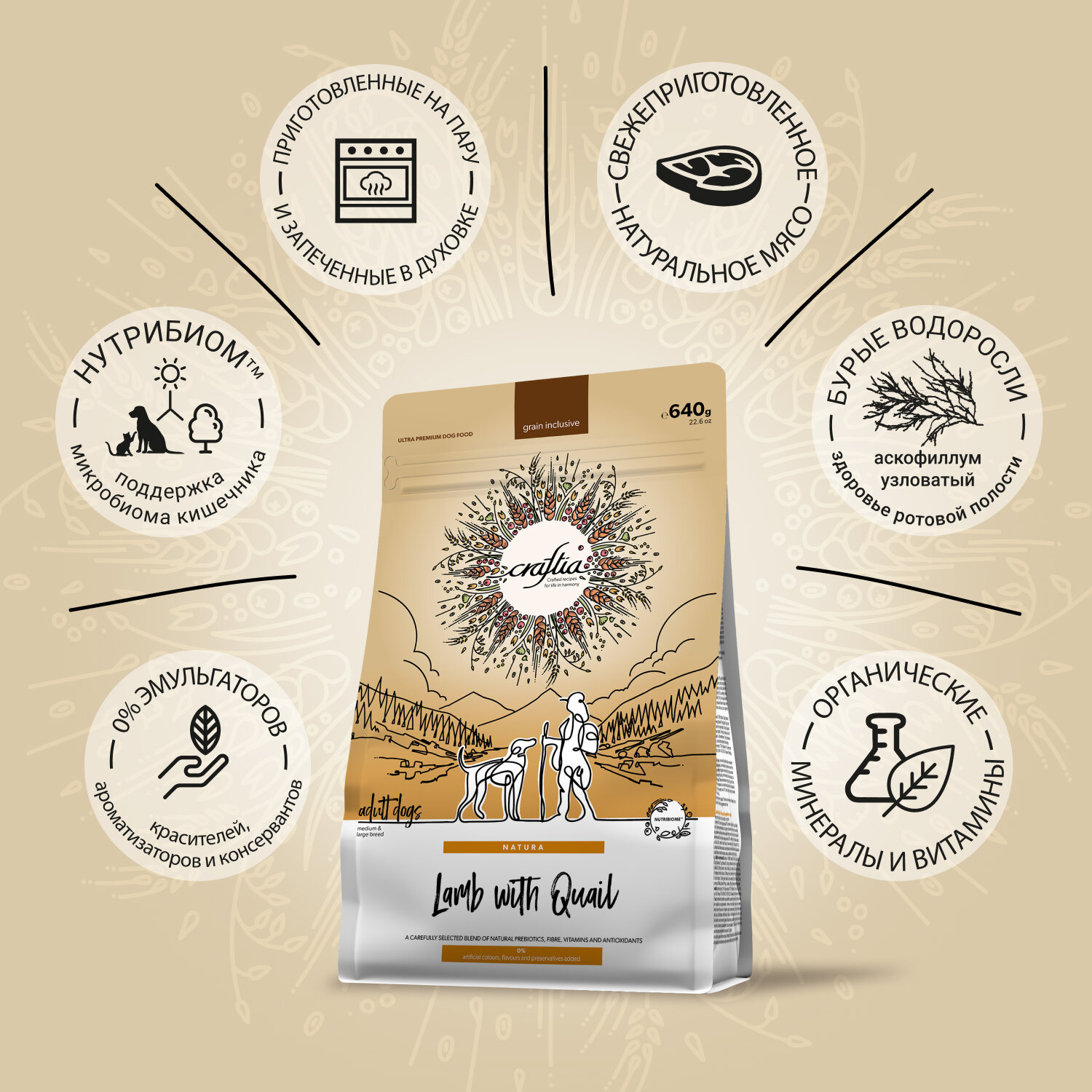 CRAFTIA NATURA сухой корм для взрослых собак средних и крупных пород из ягненка с перепелкой