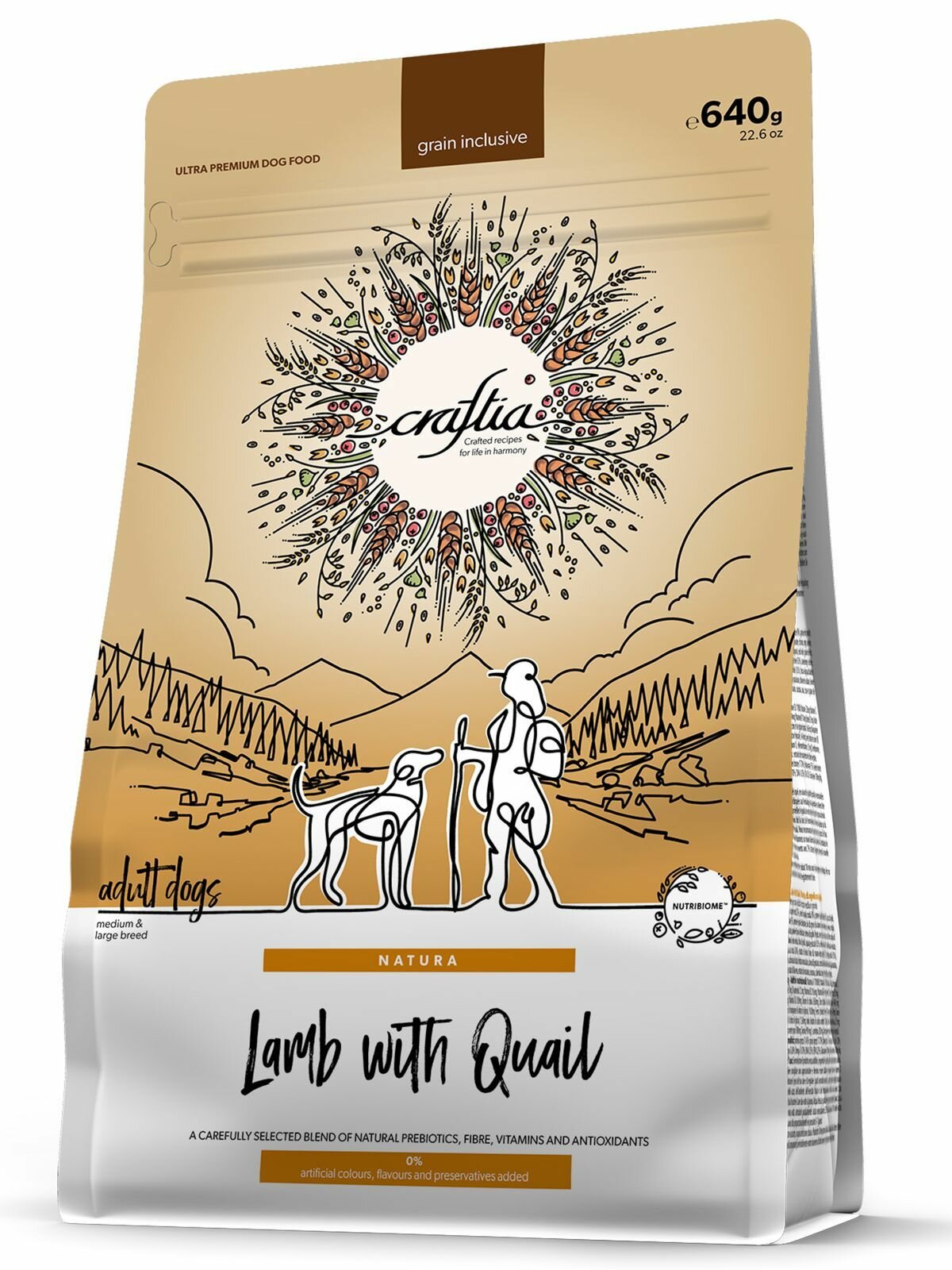 Сухой корм CRAFTIA NATURA для взрослых собак средних и крупных пород из ягненка с перепелкой 640 г: сравнение цен, характеристики, фото, актуальное наличие и цены.