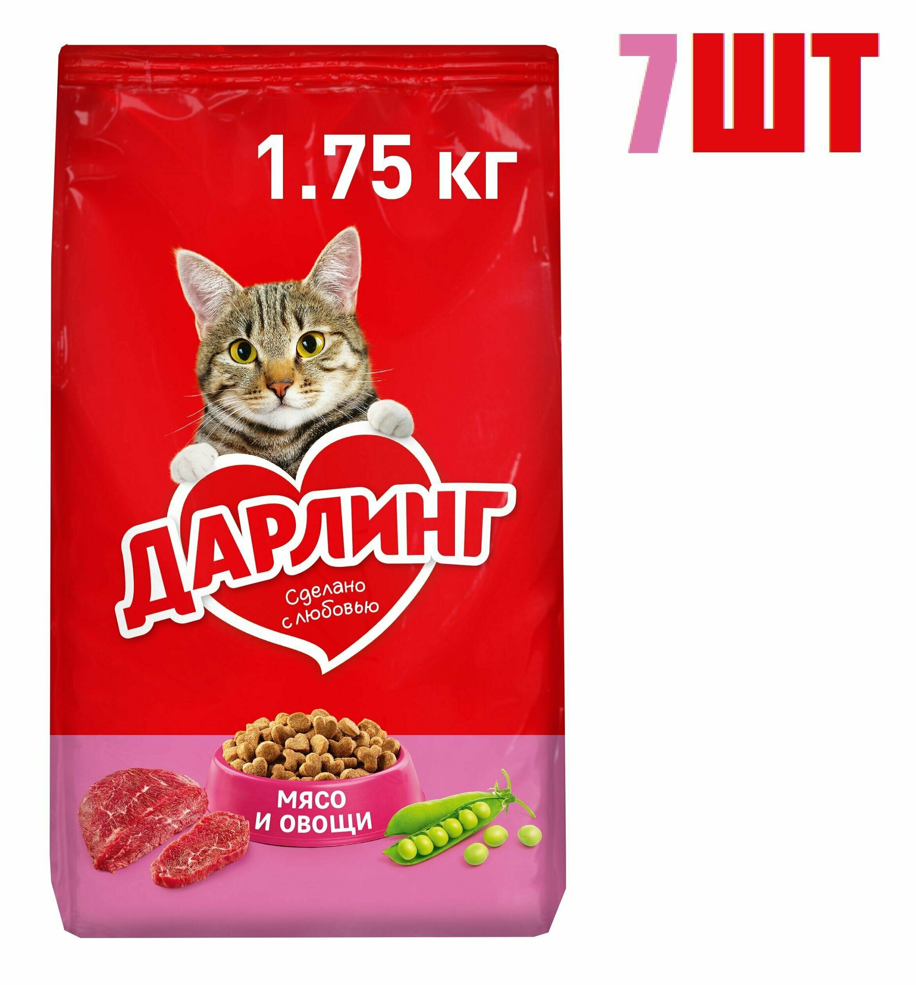 Сухой корм, «Дарлинг», для взрослых кошек и котов, с мясом и овощами, 1.75кг 7 шт: сравнение цен, характеристики, фото, актуальное наличие и цены.