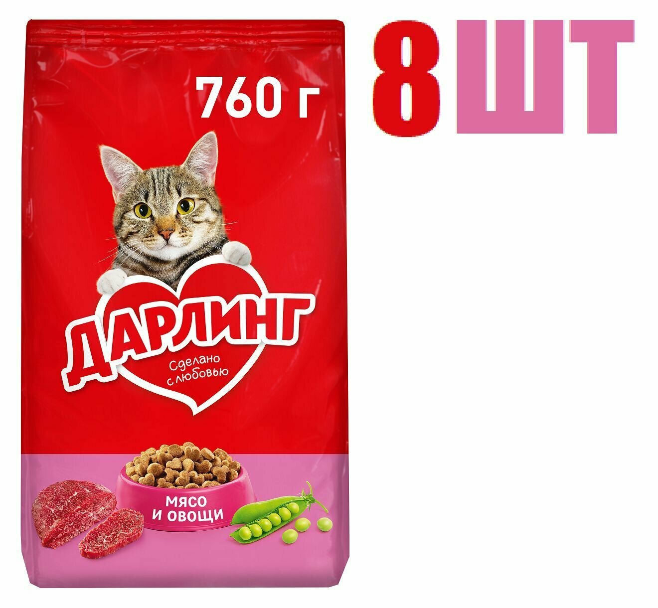 Сухой корм, «Дарлинг», для взрослых кошек и котов, с мясом и овощами, 760г 8 шт: сравнение цен, характеристики, фото, актуальное наличие и цены.