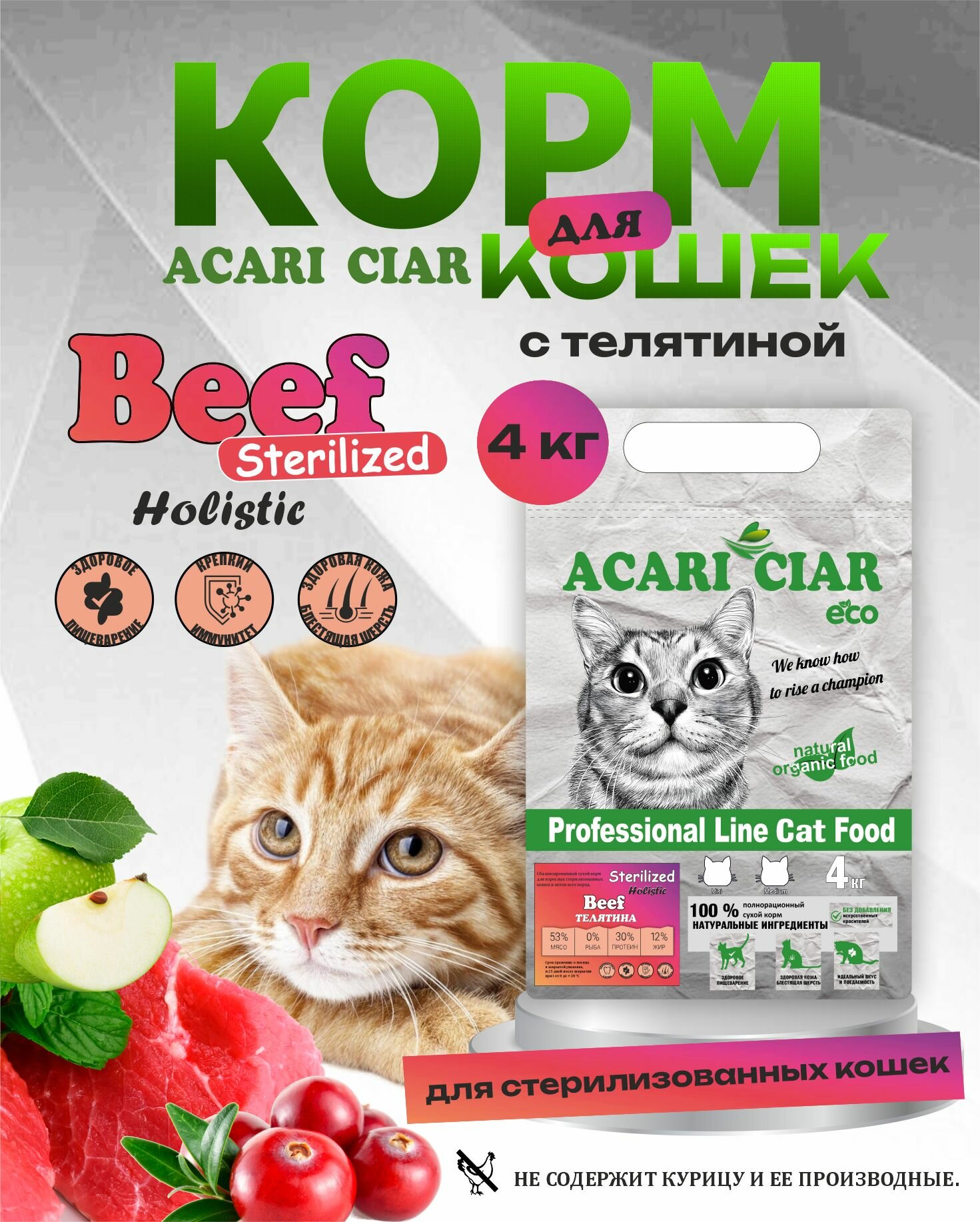 Купить Сухой корм для кошек Acari Ciar Vet A Cat Beef Holistic Sterilized 4 кг мини гранула с доставкой по всей России.