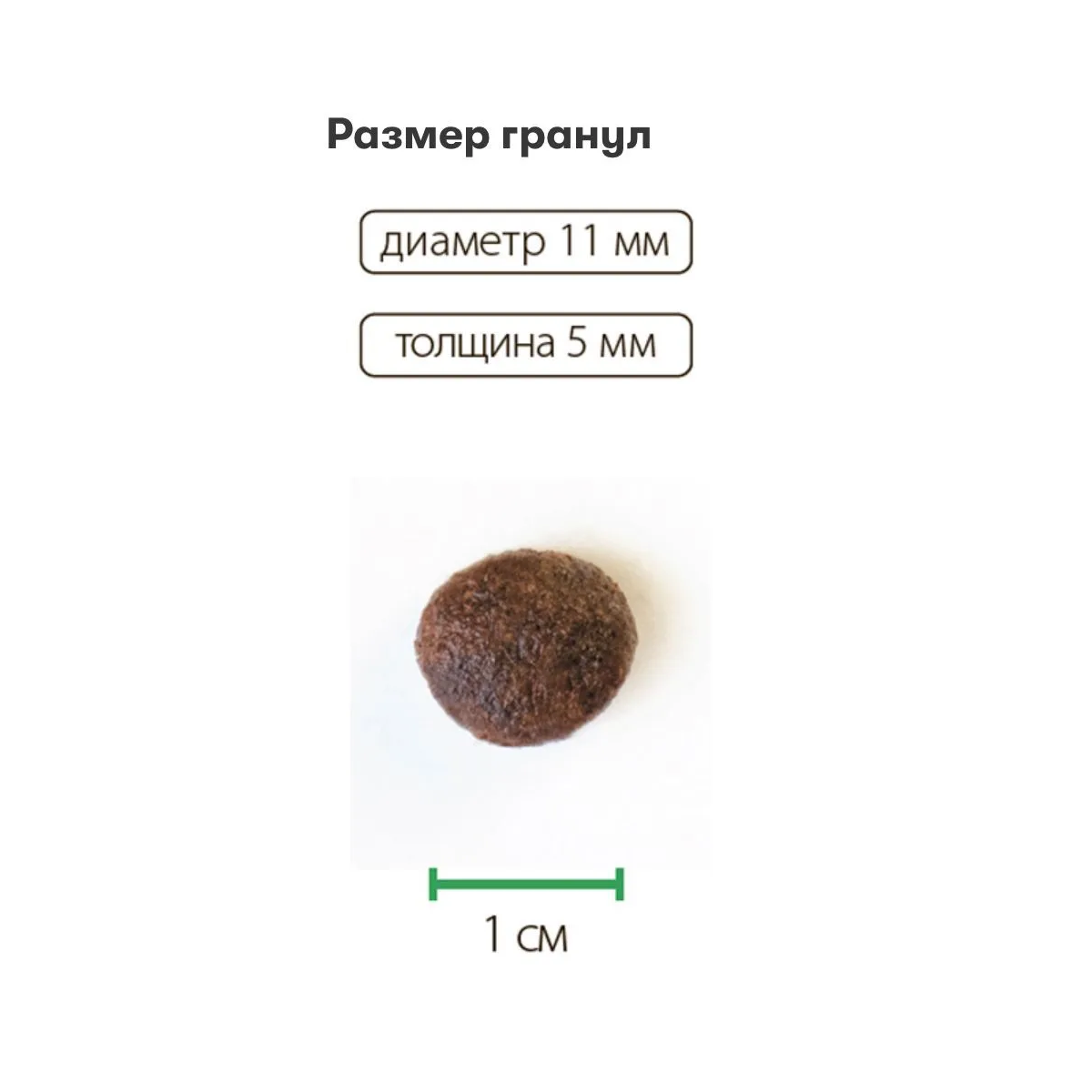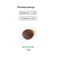 Гарантированный анализ: сырой протеин – 33,00%, сырой жир – 15,00%, сырая клетчатка – 2,50%, сырая зола – 7,90%, Кальций – 1,40%, Фосфор – 1,00%, Магний - 0,06%; Омега-6 – 1,30%, Омега-3 – 0,40%.