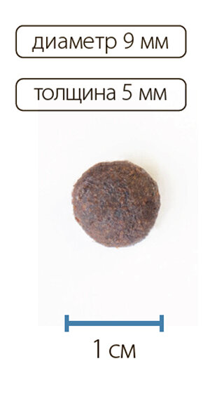 сырой протеин – 33,00%, сырой жир – 15,00%, сырая клетчатка – 2,50%, сырая зола – 7,90%, Кальций – 1,40%, Фосфор – 1,00%, Магний - 0,06%; Омега-6 – 1,30%, Омега-3 – 0,40%.