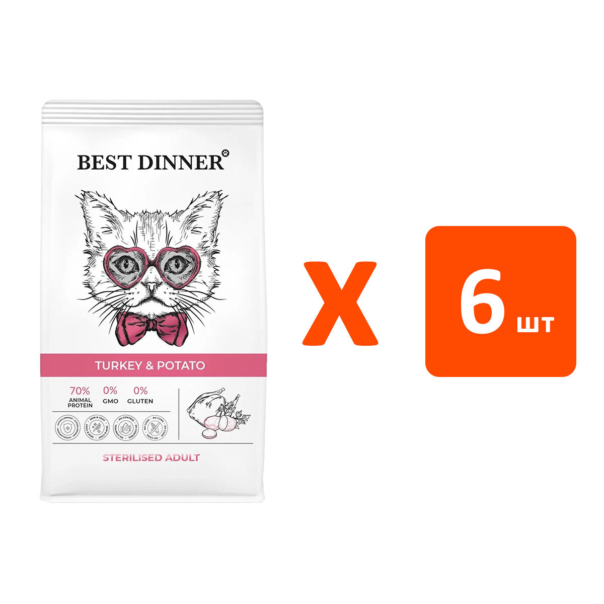 BEST DINNER CAT ADULT STERILISED TURKEY&POTATO для взрослых стерилизованных кошек с чувствительным пищеварением, индейка и картофель (1,5 кг х 6 шт)