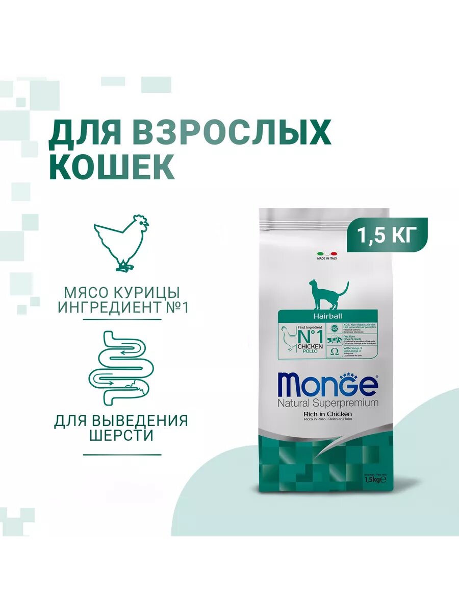 Сухой корм для кошек для выведение шерсти, Курица, 1.5 кг: сравнение цен, характеристики, фото, актуальное наличие и цены.