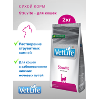 Купить Сухой корм Vet Life Cat Struvite для кошек при струвитах Диетический, 2 кг. с доставкой по всей России.