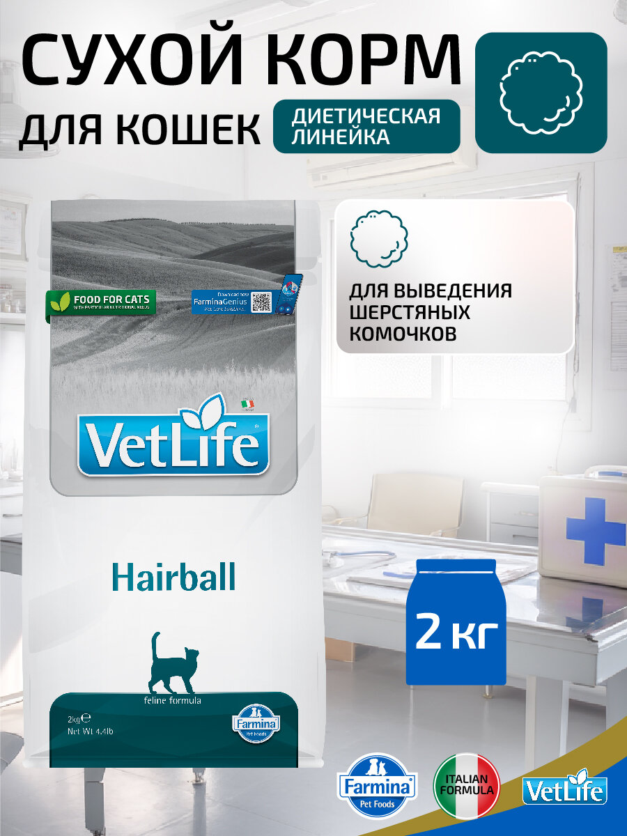 Сухой корм для кошек Farmina Vet Life Cat Hairball, для выведения шерсти, курица, 2кг: сравнение цен, характеристики, фото, актуальное наличие и цены.