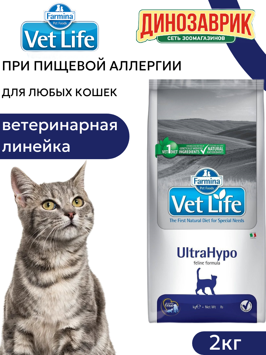 Сухой корм Vet Life Cat Ultrahypo для кошек при пищевых аллергиях и пищевых непереносимостях Диетический, 2 кг.: сравнение цен, характеристики, фото, актуальное наличие и цены.