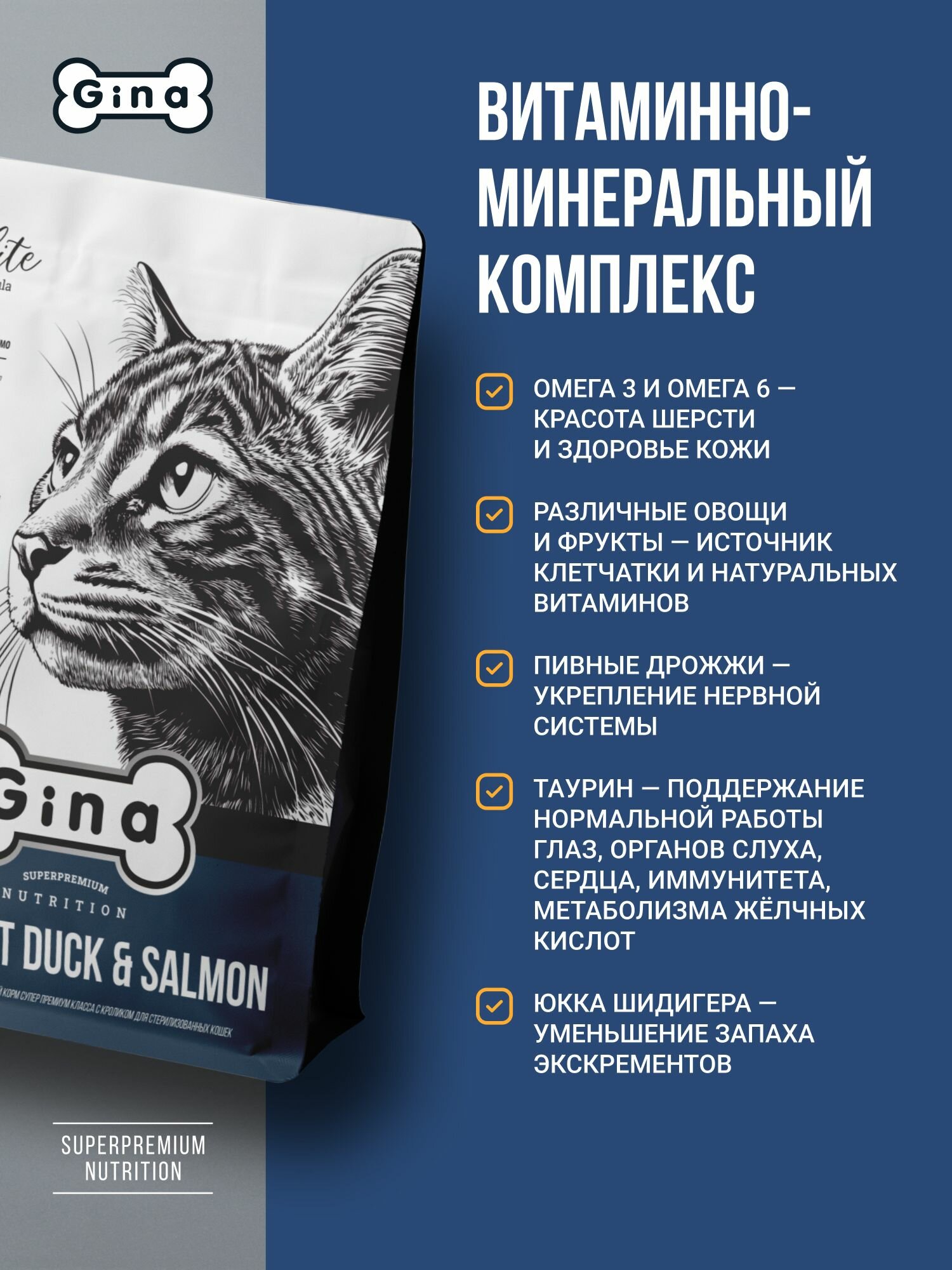 Купить Сухой корм для кошек Gina Elite беззерновой с уткой и лососем, супер премиум, для умеренно активных, 3кг, GF Cat Duck & Salmon с доставкой по всей России.