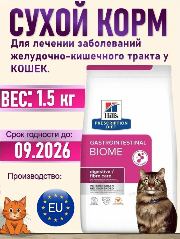 Сухой корм для кошек Hill's Gastrointestinal Biome лечение ЖКТ, 1,5 кг