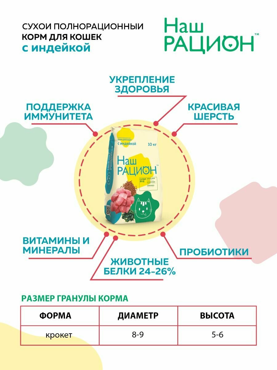 Сухой корм Наш Рацион для взрослых кошек, индейка 10Кг