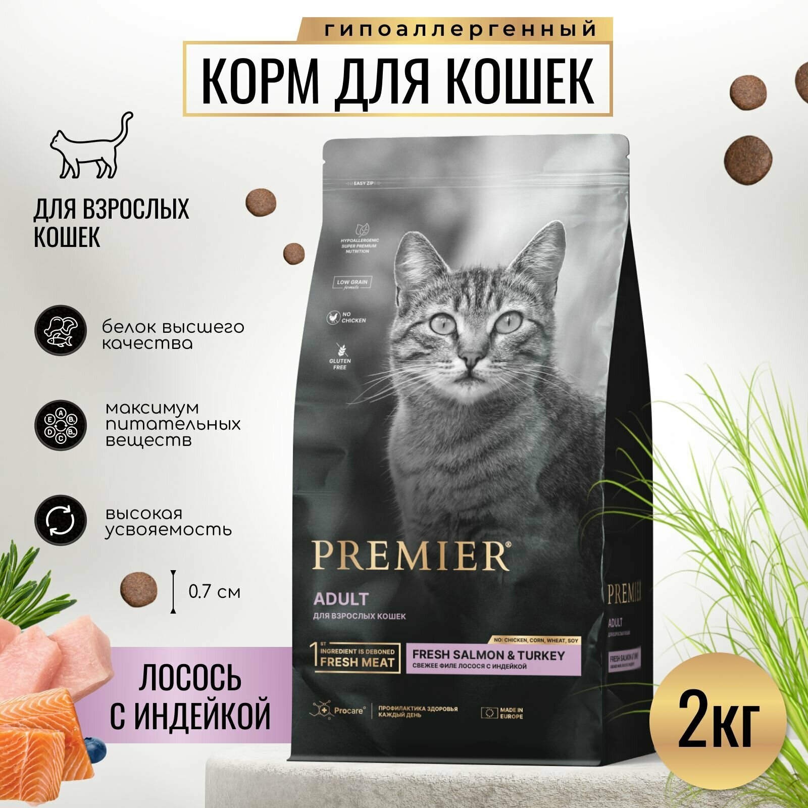 Premier Cat Salmon&Turkey Adult свежее филе лосося с индейкой, Премьер.