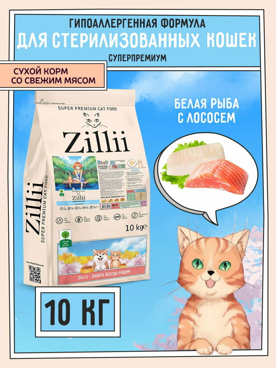 Полнорационный сухой корм ZILLII LIGHT/STERILIZED White Fish with Salmon специально изготовлен для стерилизованных кошек и удовлетворяет всем требованиям, предъявляемым к питанию стерилизованных животных.