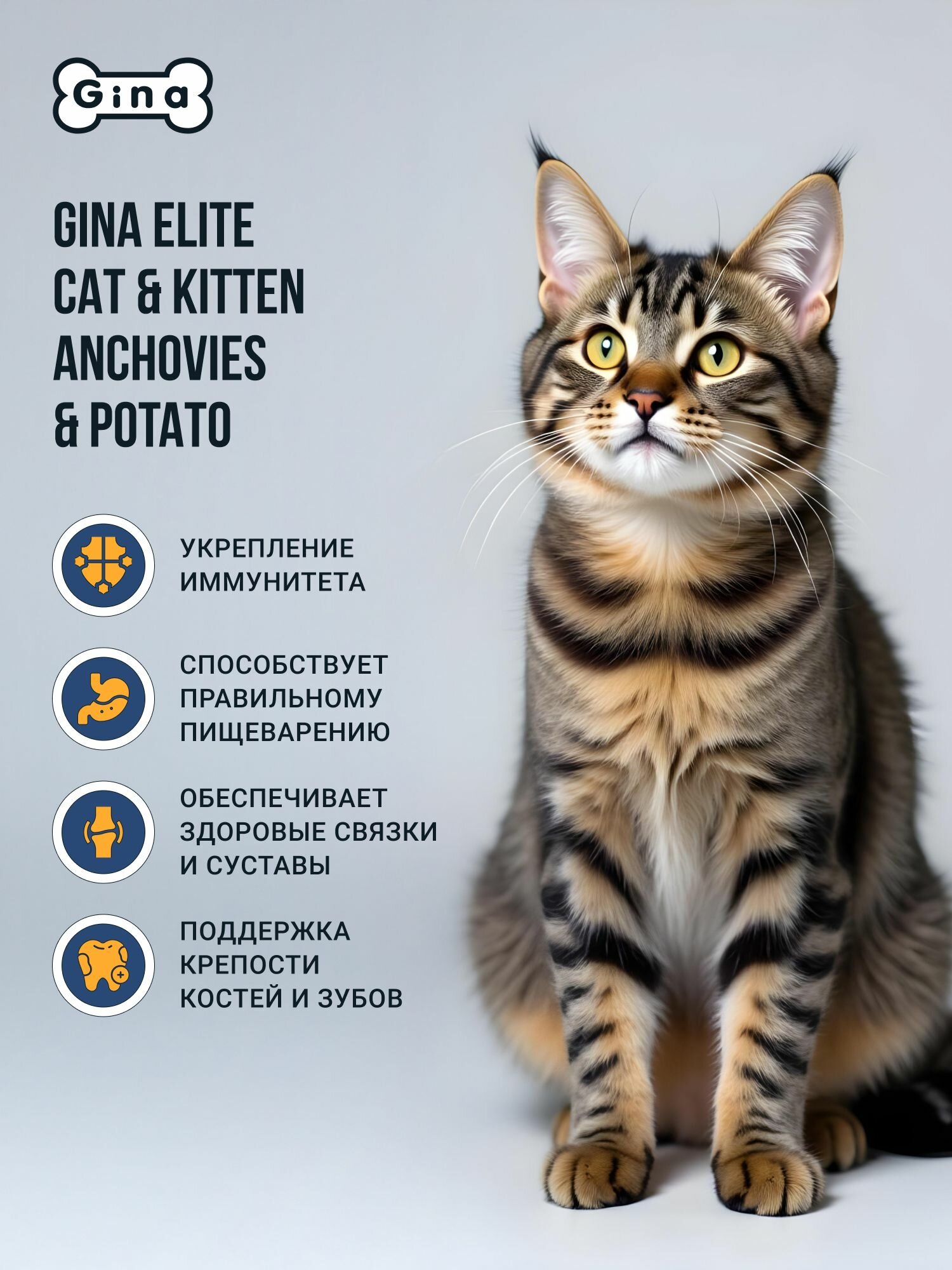 Сухой корм для котят и кошек Gina Elite с анчоусом и картофелем, супер премиум, для активных и беременных, 1кг, Cat & Kitten Anchovies & Potato: сравнение цен, характеристики, фото, актуальное наличие и цены.