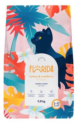 Florida - сухой корм премиум-класса с индейкой и клюквой для котят с 2 до 12 месяцев. Сбалансированное полнорационное питание способствует здоровому пищеварению и поддерживает организм различными витаминами во время роста.