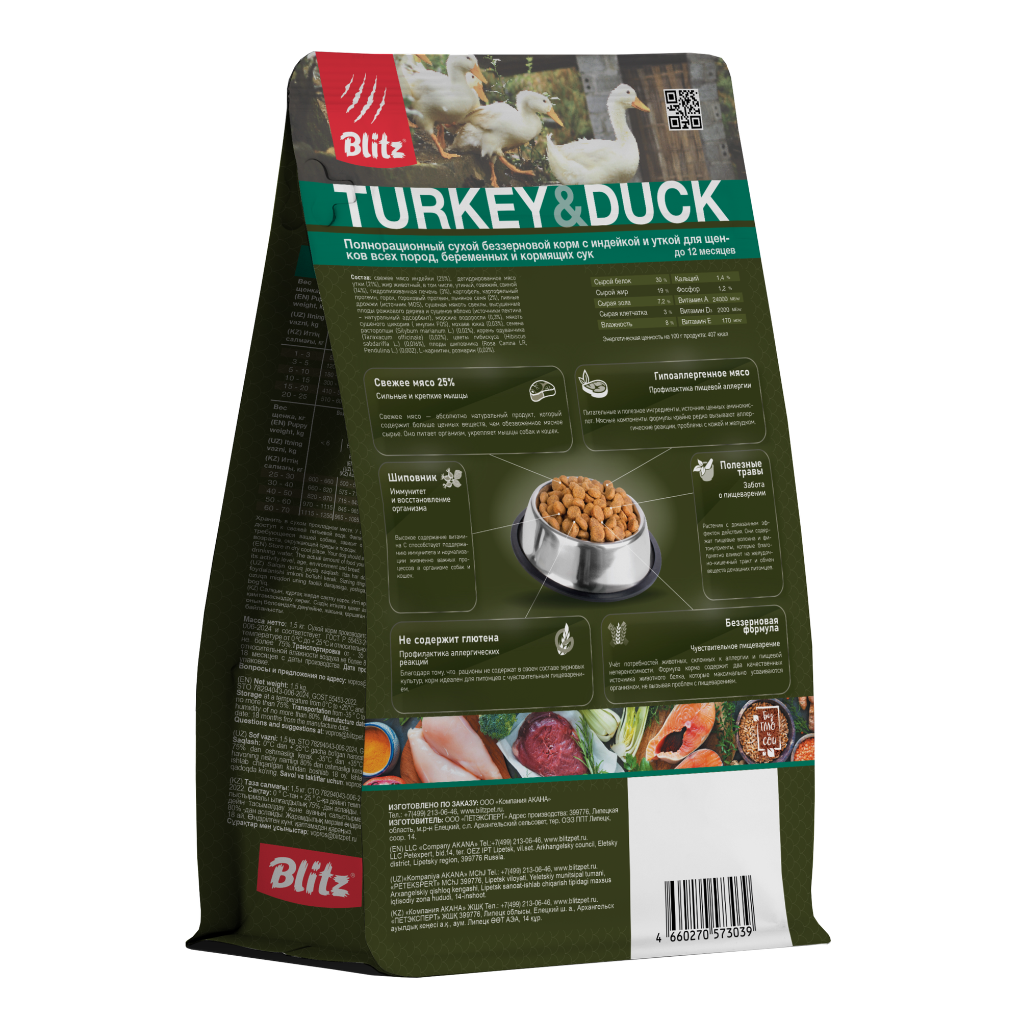 Сухой корм для щенков холистик Blitz Holistic Turkey & duck puppy с индейкой и уткой 1,5 кг: сравнение цен, характеристики, фото, актуальное наличие и цены.