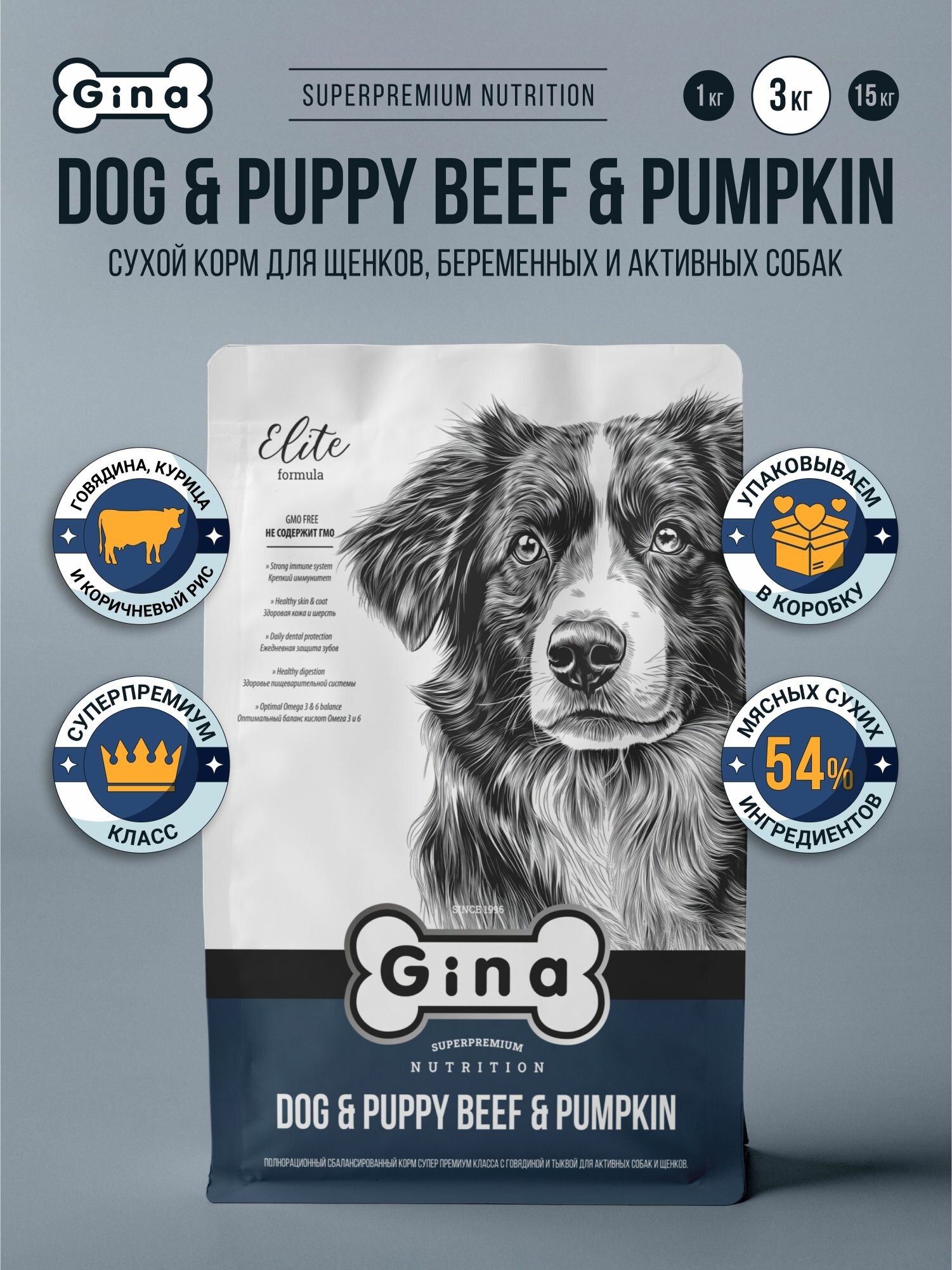 Купить Сухой корм для щенков и собак Gina Elite с говядиной и тыквой, супер премиум, для активных и беременных, 3кг Dog & Puppy Beef & Pumpkin с доставкой по всей России. Сухой корм для щенков и собак Gina Elite с говядиной и тыквой, супер премиум, для активных и беременных, 3кг Dog & Puppy Beef & Pumpkin: сравнение цен, характеристики, фото, актуальное наличие и цены.