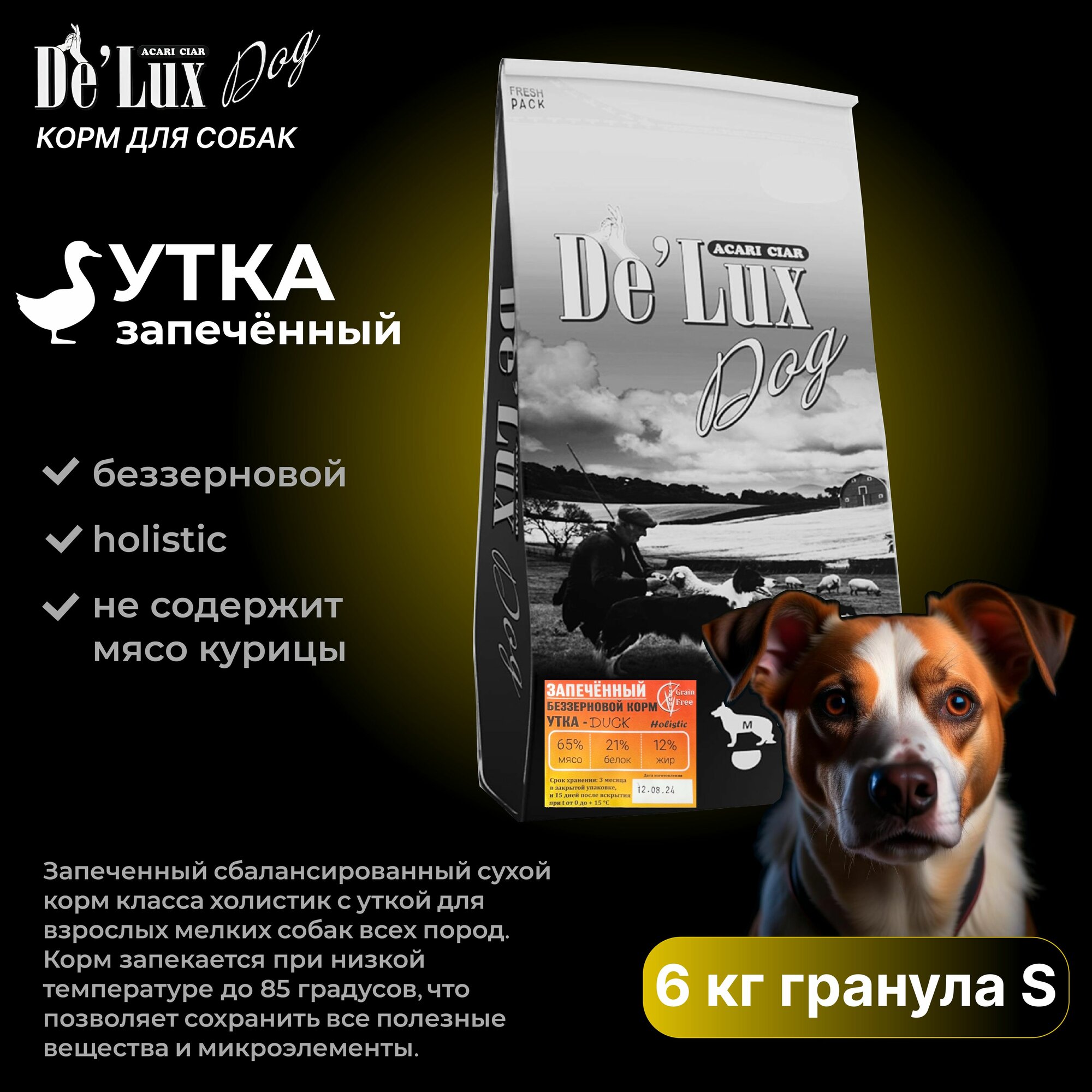 Запеченный беззерновой сбалансированный сухой корм класса холистик с уткой для собак всех пород. Продукция ACARI CIAR - это натуральное и здоровое питание для четвероногих любимцев! Корма Акари Киар - созданы благодаря рекомендациям и советам ведущих ветеринарных врачей, кинологов и заводчиков России. В результате создан 100% натуральный, идеально сбалансированный, полнорационный корм для домашних животных. Запеченный беззерновой сухой корм для собак Baked с мясом кролика - это премиум класса еда, которую ваш питомец будет обожать! Сбалансированный и класса холистик, этот корм идеально подходит для взрослых собак всех пород и размеров. Наш запеченный беззерновой сухой корм содержит высококачественное мясо утки, которое является легкоусвояемым для чувствительных пищеварительных систем животных. Этот корм не содержит зерна, что делает его идеальным выбором для собак, которые страдают от аллергий и других чувствительностей. Наш запеченный беззерновой сухой корм также обеспечивает оптимальный уровень питательных веществ, необходимых для здоровой жизни вашей собаки. Вам не придется беспокоиться о том, что ваша собака не получает необходимые питательные вещества, так как наш корм содержит все важные витамины и минералы, необходимые для здоровья вашего любимца. Вашему питомцу понравится вкус этого корма, и вы будете довольны результатом! Купите наш запеченный беззерновой сухой корм для собак Акари Сиар Бакед с мясом утки сегодня и обеспечьте своей собаке здоровое и счастливое будущее. Запеченный беззерновой сухой корм Backed с мясом утки - отличный выбор для владельцев собак, которые следят за качеством питания своих питомцев. Этот корм содержит только натуральные ингредиенты высочайшего качества, включая свежее мясо утки, свежие утиные потроха, фрукты, овощи и витамины. Беззерновая формула обеспечивает полноценное и сбалансированное питание, не нанося вреда здоровью пищеварительной системы собаки. Кроме того, корм Backed проходит обработку на высоких температурах для увеличения своей питательности и сохранения всех важных свойств ингредиентов. Сочный вкус и аромат мяса утки не оставят равнодушными даже самых привередливых питомцев. Backed - это отличный выбор для здорового и счастливого питомца. Запеченный сухой корм для собак Acari Ciar Baked с мясом утки - это высококачественный продукт, который обеспечит вашего питомца всеми необходимыми питательными веществами для здоровья и активной жизни. Основной ингредиент корма - это свежее мясо утки, которое содержит высококачественные белки и жиры, необходимые для укрепления мышечной массы и поддержания здоровой кожи и шерсти. А также он богат витамином В, который способствует нормальному функционированию нервной системы. Корм содержит также овощи и фрукты, в том числе тыкву, яблоки, морковь и картофель, которые обеспечат вашего питомца важными витаминами и минералами. Корм также не содержит искусственных красителей, консервантов и ароматизаторов, что делает его естественным и безопасным для вашей собаки. Сухой корм легко хранится и упакован в удобную упаковку, которая сохраняет свежесть продукта на долгое время. Он идеально подходит для всех пород собак и отлично подойдет для питомцев с чувствительным пищеварением. Попробуйте запеченный сухой корм для собак Acari Ciar Baked с мясом утки, и