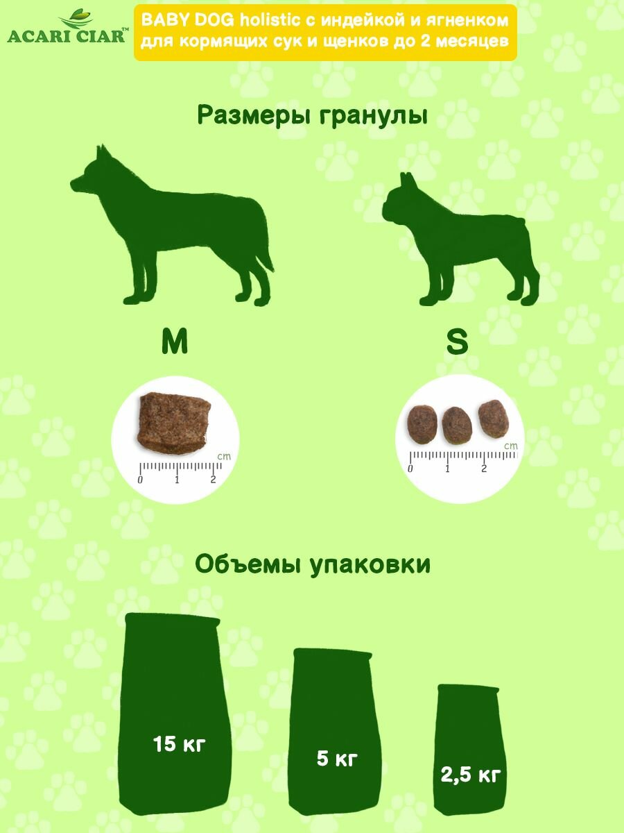 Сухой корм Acari Ciar Baby Dog - это лучший выбор для щенков до 2 месяцев, беременных и кормящих собак, которым требуется сбалансированное и питательное питание. Корм разработан, чтобы обеспечить оптимальное здоровье и развитие вашего питомца, а также предоставить ему здоровый первый прикорм.