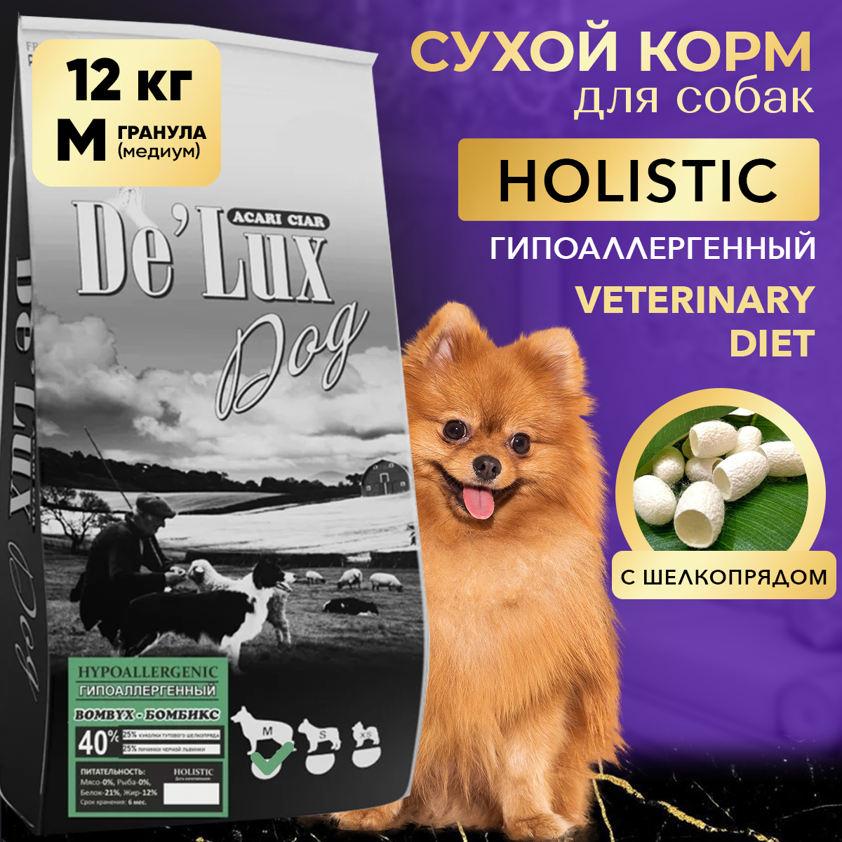 Сбалансированный корм для собак сухой 12 кг класса холистик на основе куколки тутового шелкопряда и личинки черной львинки для взрослых собак всех пород.