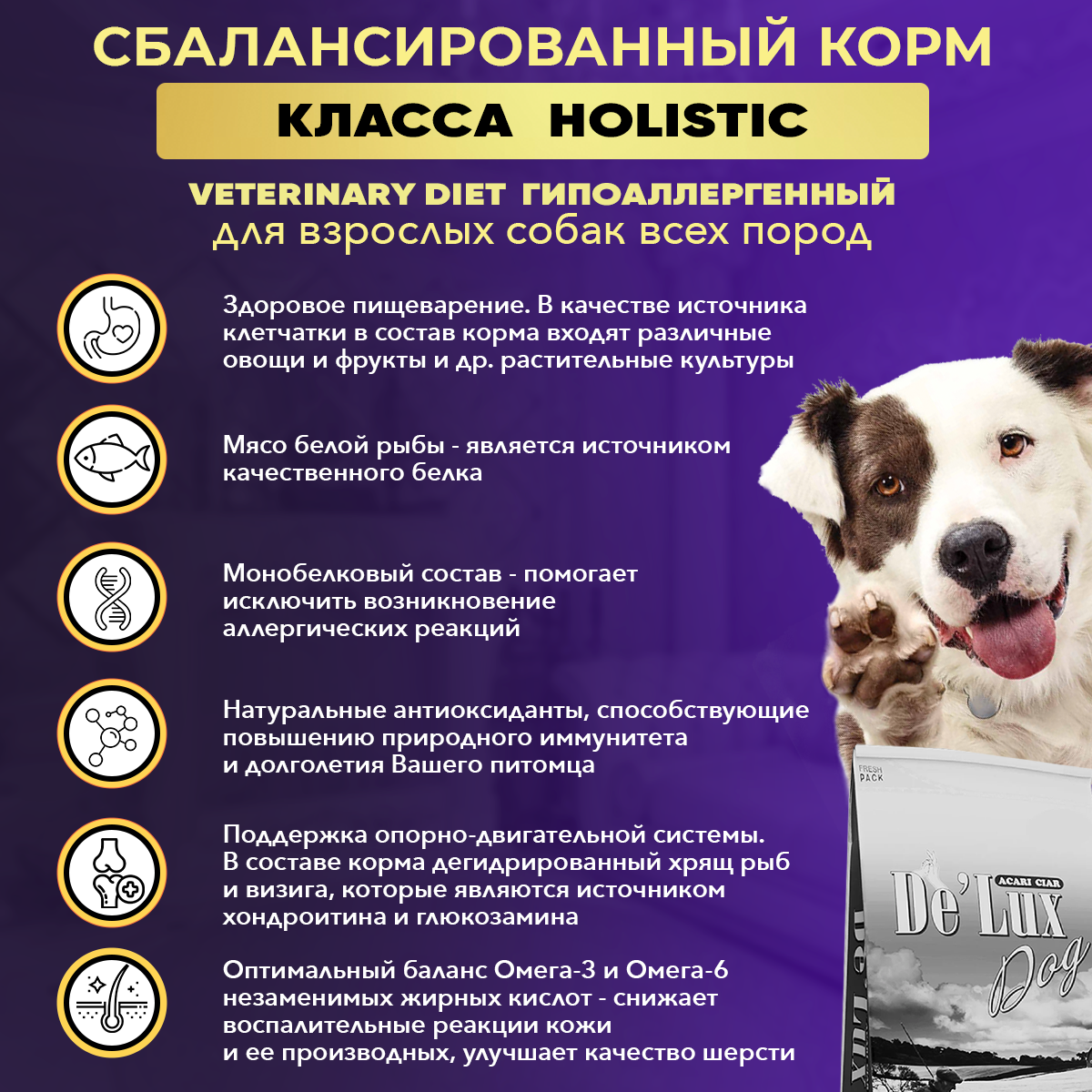 Гипоаллергенный сбалансированный сухой корм класса холистик с рыбой для взрослых собак всех пород