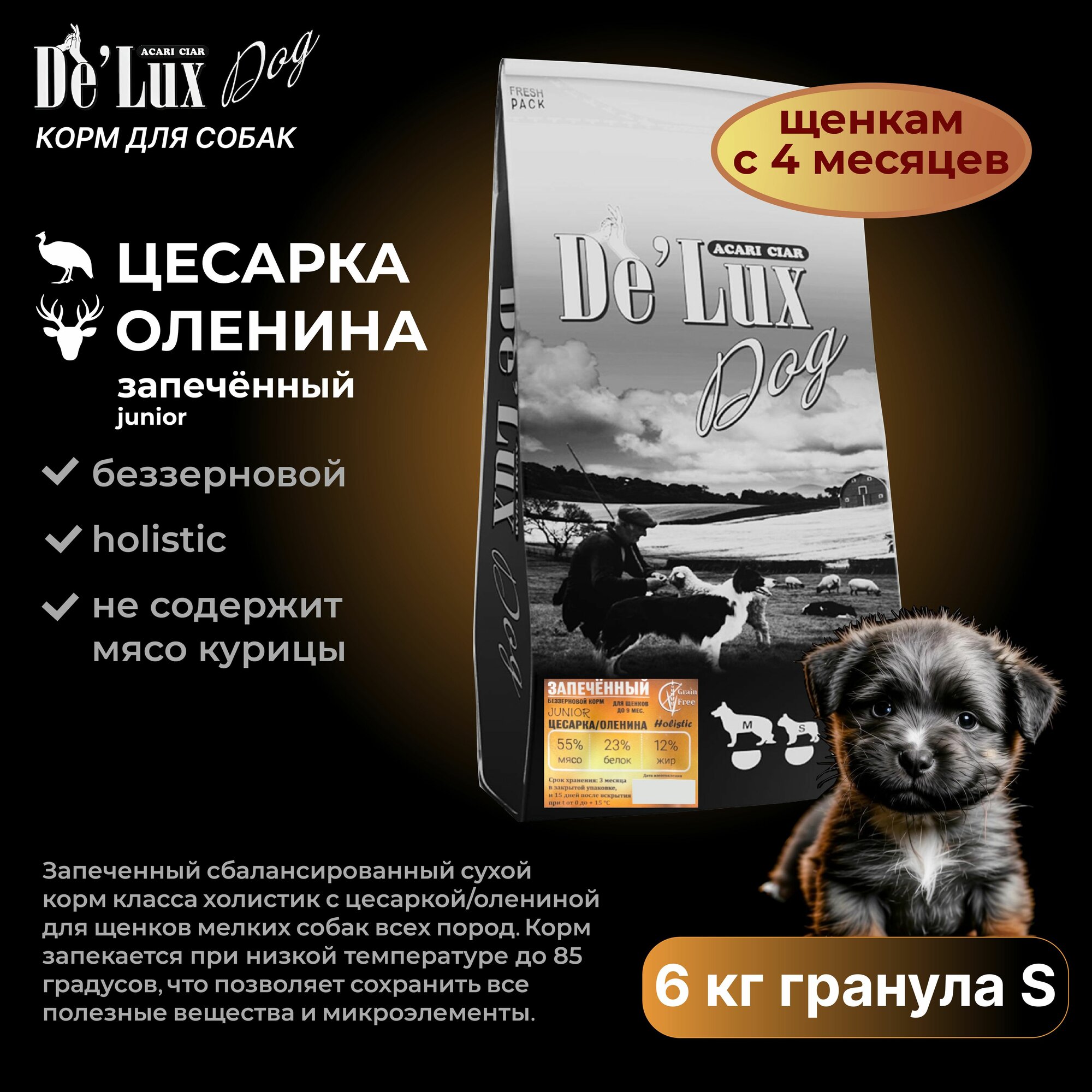 Корм Acari Ciar Junior предназначен для щенков крупных и средних пород собак до 9 месяцев. Этот беззерновой запеченный сухой корм класса холистик содержит мясо цесарки и оленя, а также батат, топинамбур, кокосовое и оливковое масло. В качестве консерванта используется витамин Е, который также является источником DHA.